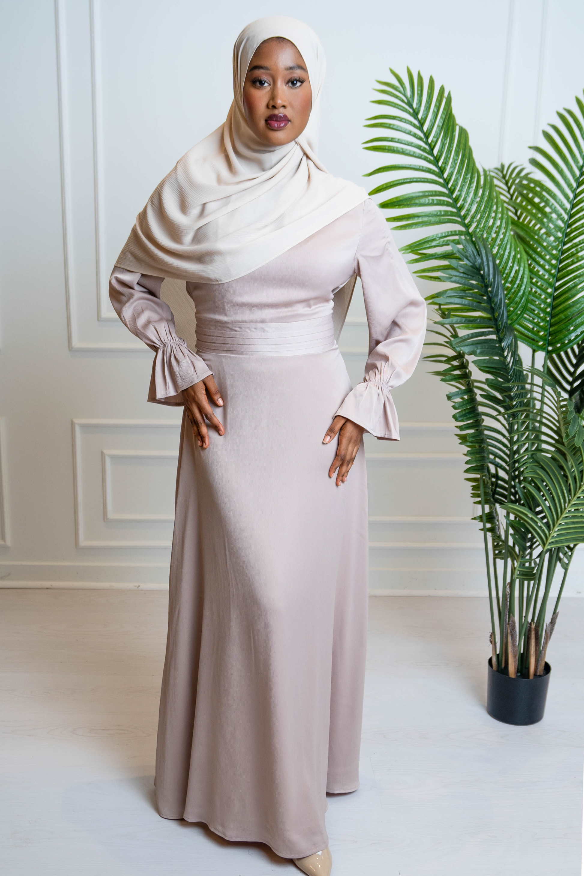 Beige Crepe Satin Dress